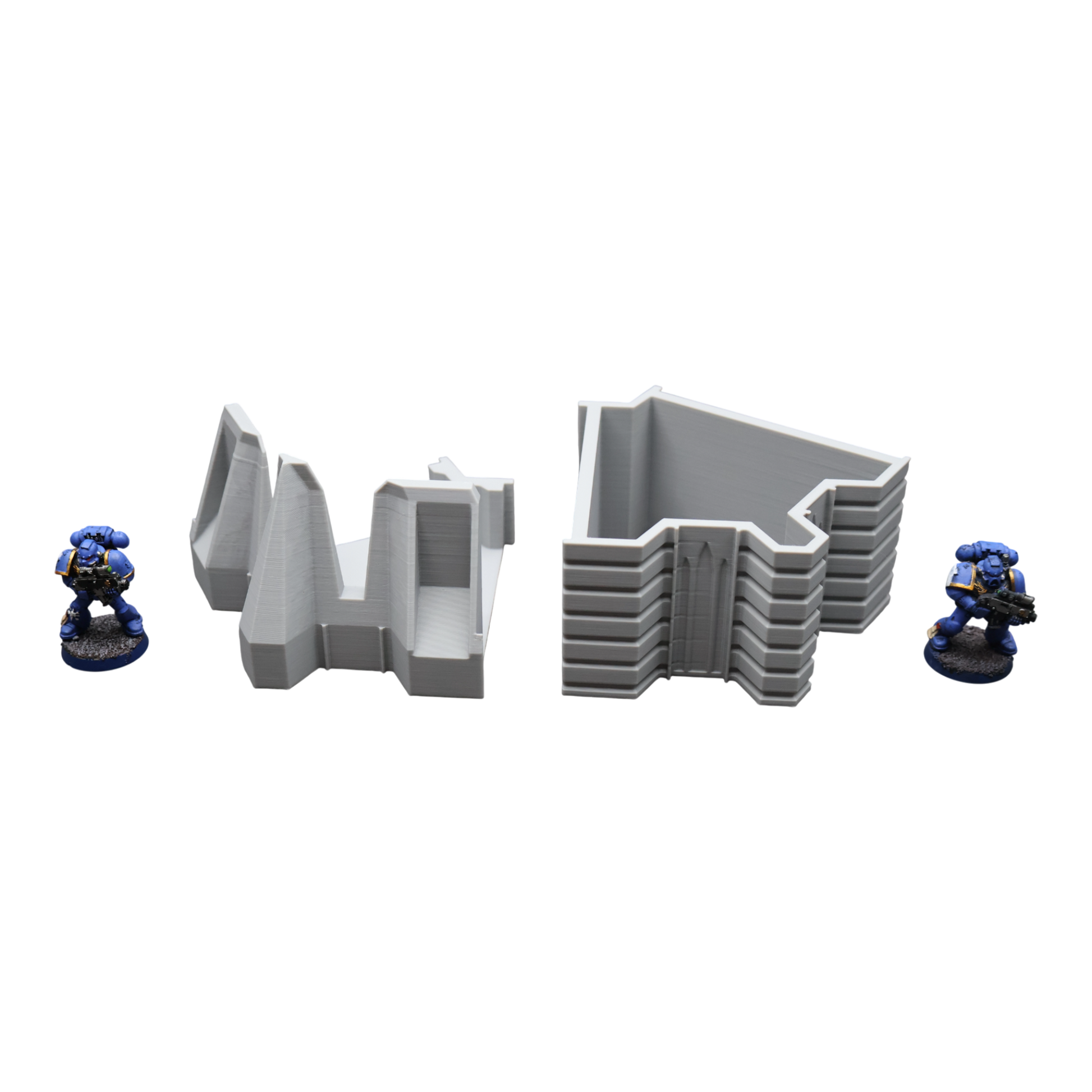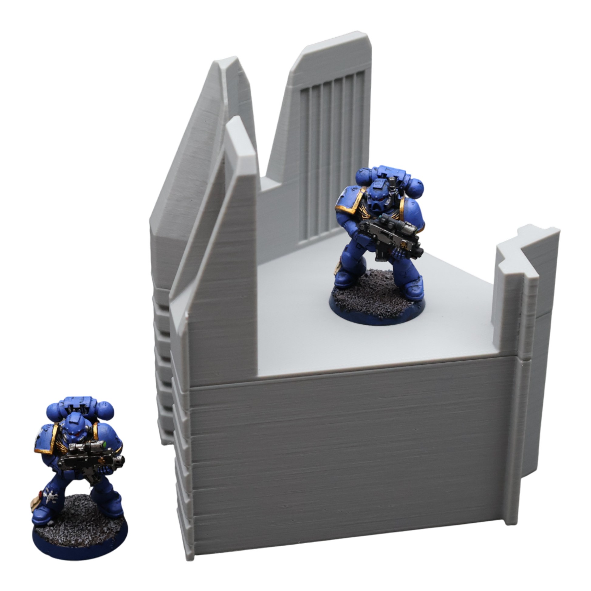 All scenery and terrain is 3D printed using a plant based grey plastic filament (PLA). The shade of grey may vary due to material suppliers and availability, please message if you have a specific requirement. Due to the nature of 3D printing there may be minor imperfections, however all items are quality checked before being posted. The miniature models used for product photos are to show sizing and display purposes only. They are not included in the orders. The 3D Models you receive will be of the same or better quality than those displayed in the listing pictures.