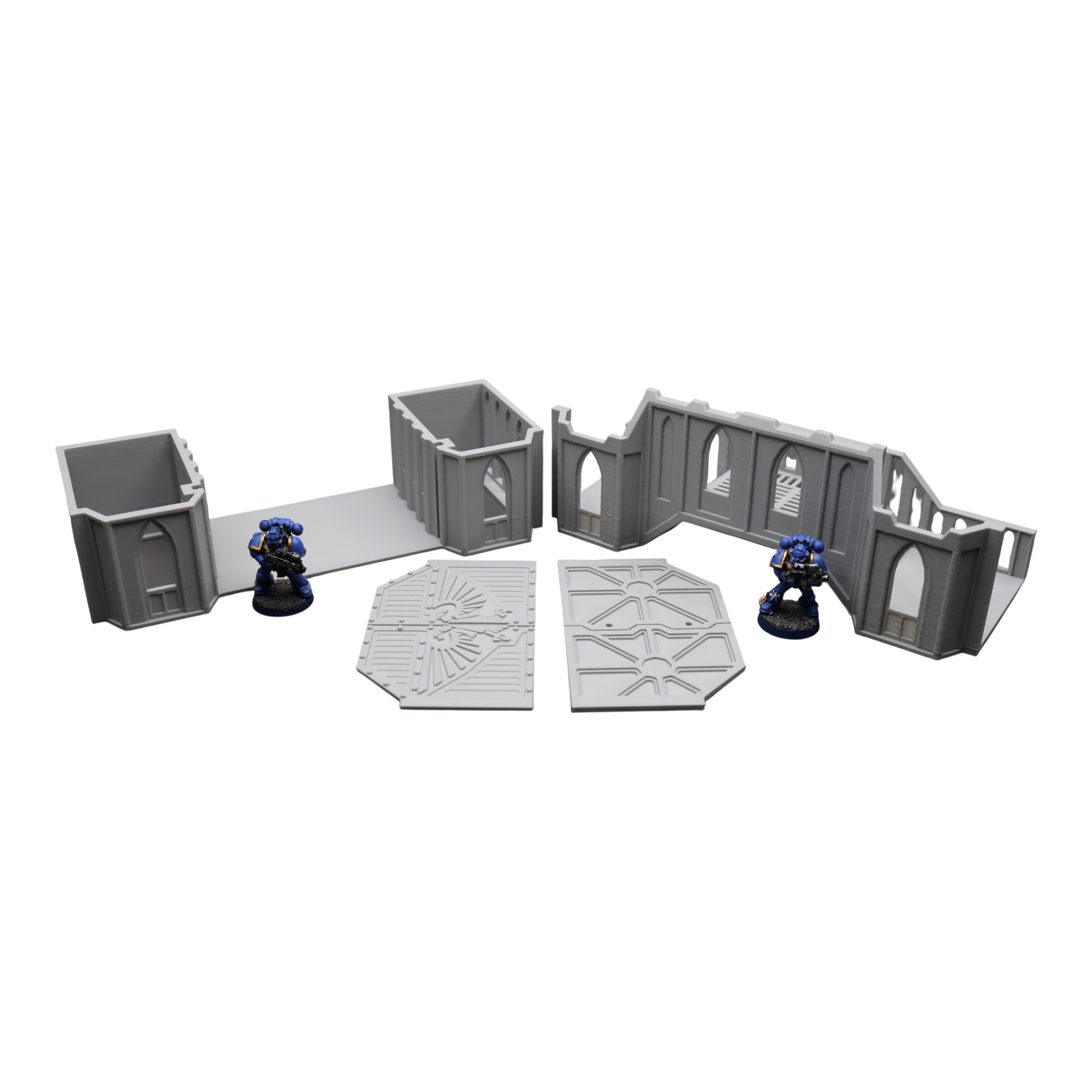 All scenery and terrain is 3D printed using a plant based grey plastic filament (PLA). The shade of grey may vary due to material suppliers and availability, please message if you have a specific requirement. Due to the nature of 3D printing there may be minor imperfections, however all items are quality checked before being posted. The miniature models used for product photos are to show sizing and display purposes only. They are not included in the orders. The 3D Models you receive will be of the same or better quality than those displayed in the listing pictures.