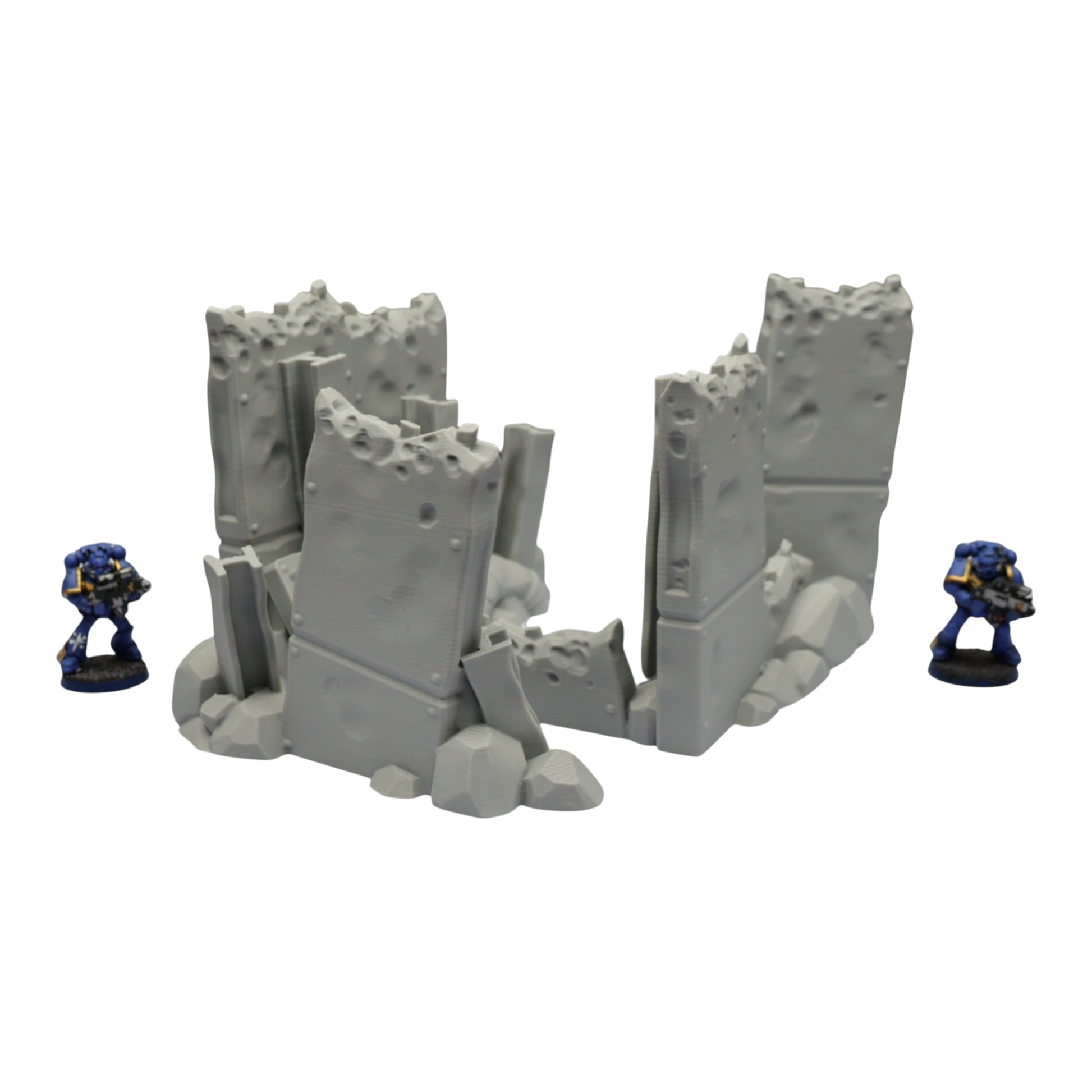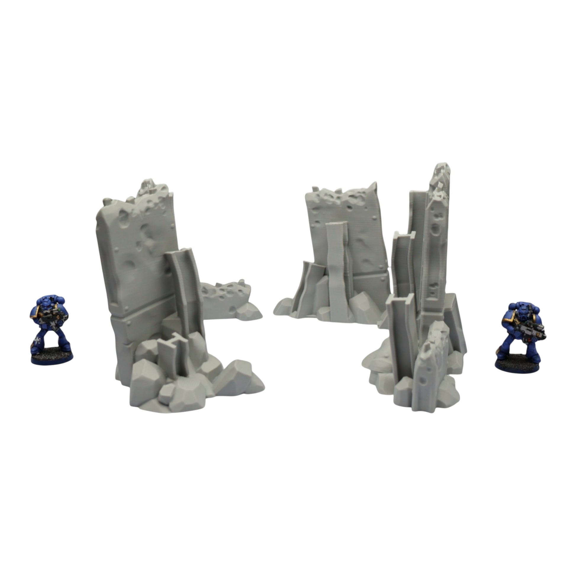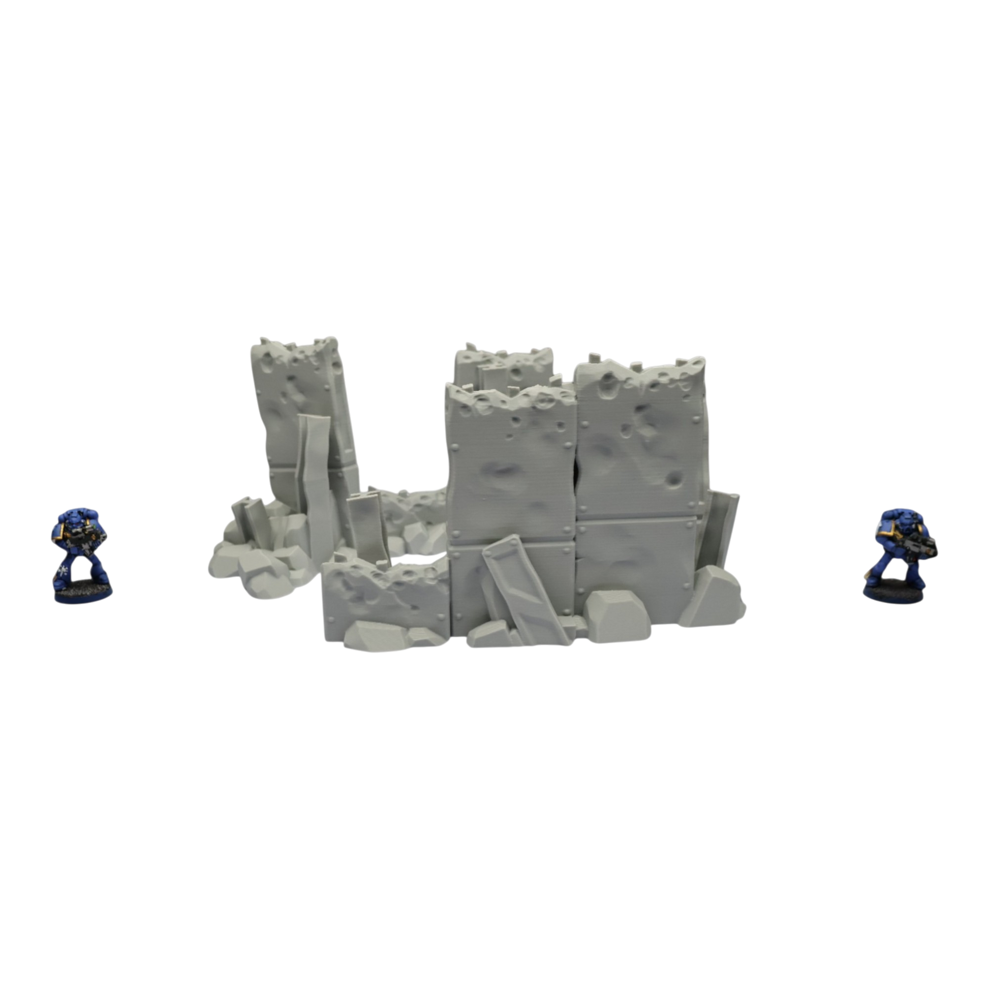 All scenery and terrain is 3D printed using a plant based grey plastic filament (PLA). The shade of grey may vary due to material suppliers and availability, please message if you have a specific requirement. Due to the nature of 3D printing there may be minor imperfections, however all items are quality checked before being posted. The miniature models used for product photos are to show sizing and display purposes only. They are not included in the orders. The 3D Models you receive will be of the same or better quality than those displayed in the listing pictures. All items are cleaned from artifacts and "stringing" (the wispy lines of material from the production process).