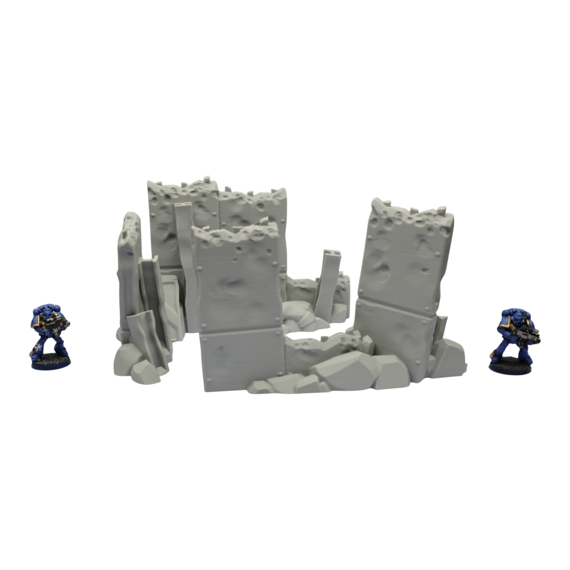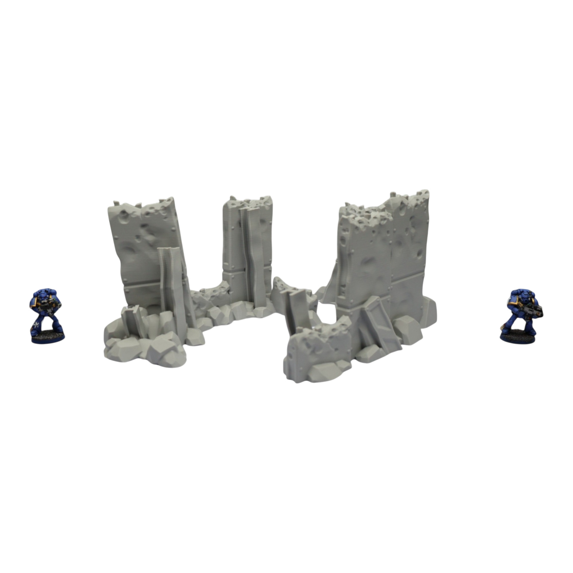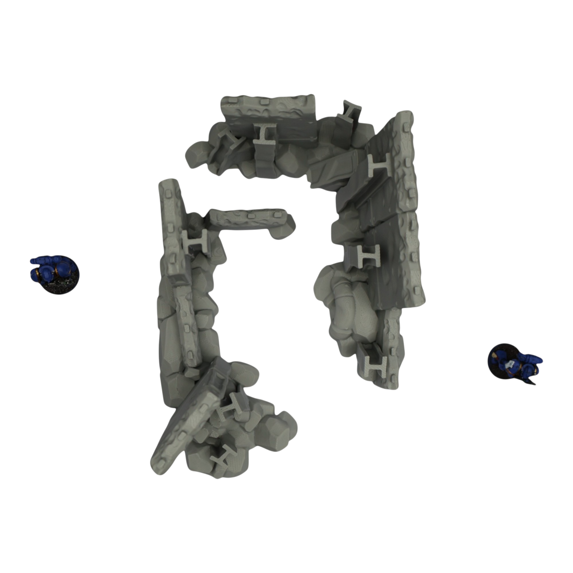 All scenery and terrain is 3D printed using a plant based grey plastic filament (PLA). The shade of grey may vary due to material suppliers and availability, please message if you have a specific requirement. Due to the nature of 3D printing there may be minor imperfections, however all items are quality checked before being posted. The miniature models used for product photos are to show sizing and display purposes only. They are not included in the orders. The 3D Models you receive will be of the same or better quality than those displayed in the listing pictures. All items are cleaned from artifacts and "stringing" (the wispy lines of material from the production process).