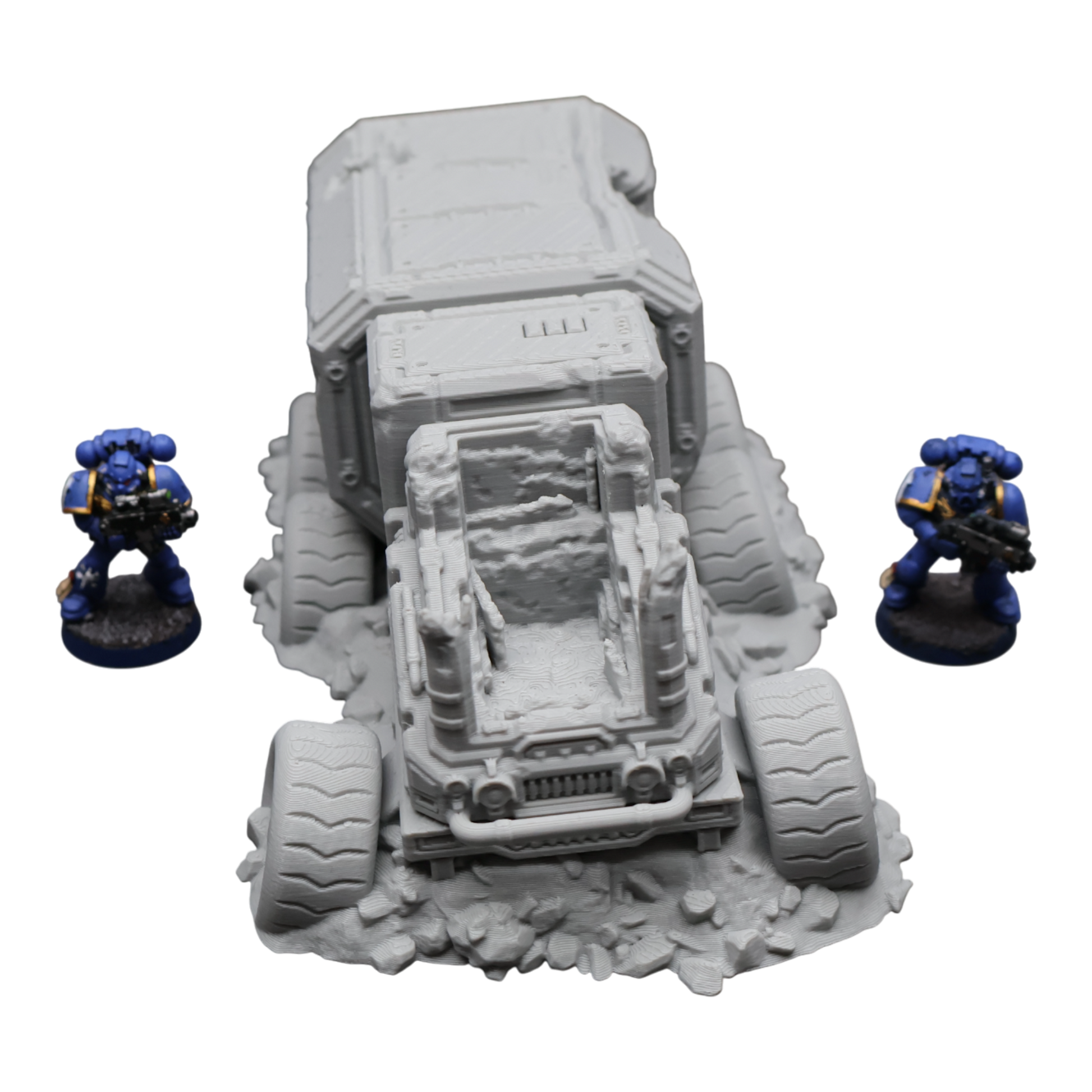 All scenery and terrain is 3D printed using a plant based grey plastic filament (PLA). The shade of grey may vary due to material suppliers and availability, please message if you have a specific requirement. Due to the nature of 3D printing there may be minor imperfections, however all items are quality checked before being posted. The miniature models used for product photos are to show sizing and display purposes only. They are not included in the orders. The 3D Models you receive will be of the same or better quality than those displayed in the listing pictures.