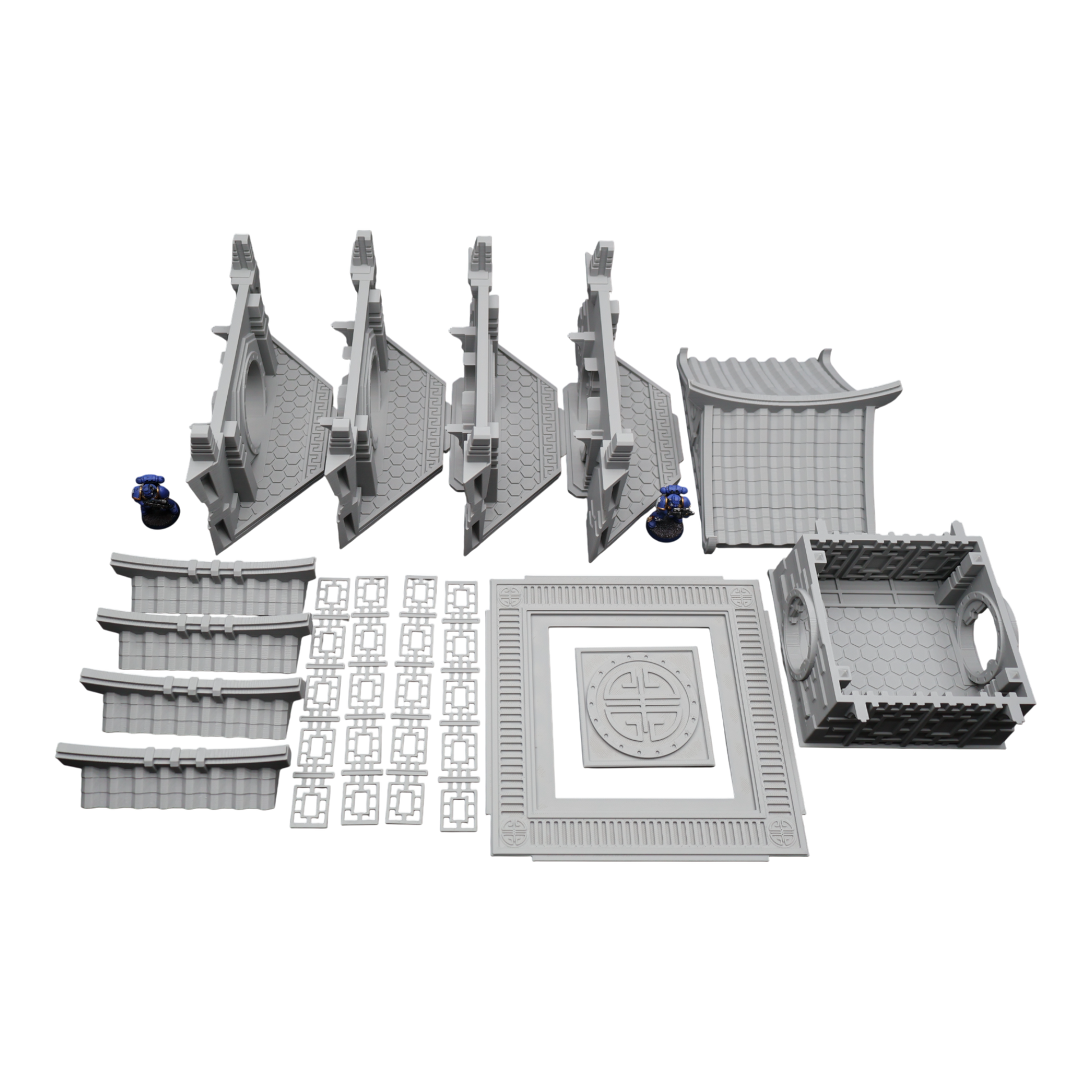 All scenery and terrain is 3D printed using a plant based grey plastic filament (PLA). The shade of grey may vary due to material suppliers and availability, please message if you have a specific requirement. Due to the nature of 3D printing there may be minor imperfections, however all items are quality checked before being posted. The miniature models used for product photos are to show sizing and display purposes only. They are not included in the orders. The 3D Models you receive will be of the same or better quality than those displayed in the listing pictures.