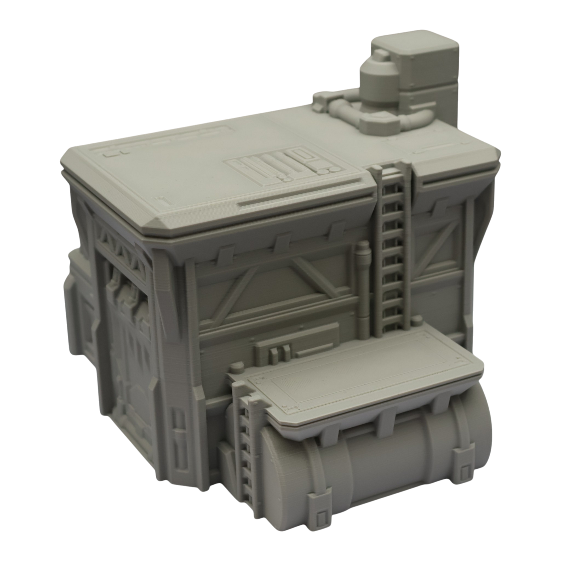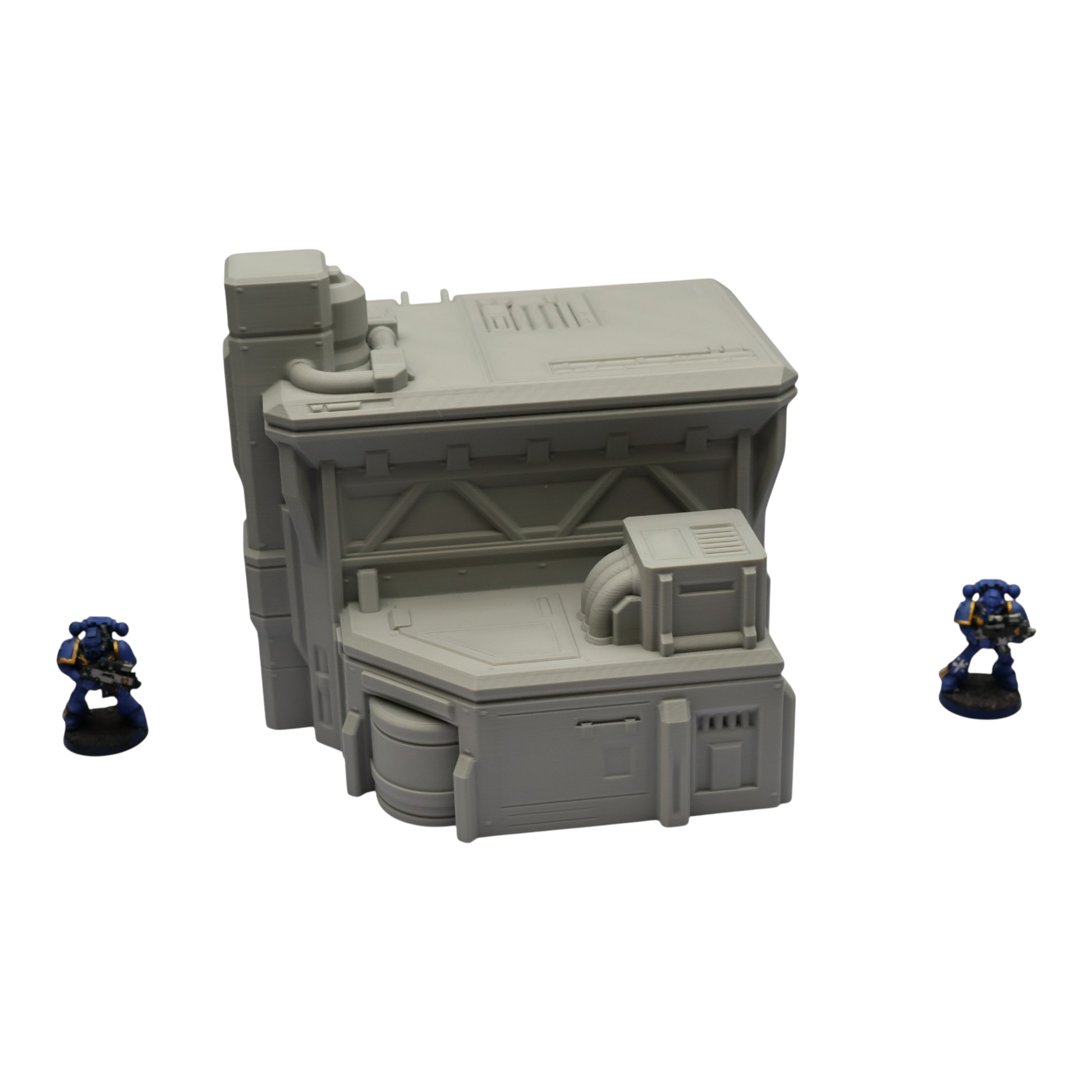 All scenery and terrain is 3D printed using a plant based grey plastic filament (PLA). The shade of grey may vary due to material suppliers and availability, please message if you have a specific requirement. Due to the nature of 3D printing there may be minor imperfections, however all items are quality checked before being posted. The miniature models used for product photos are to show sizing and display purposes only. They are not included in the orders. The 3D Models you receive will be of the same or better quality than those displayed in the listing pictures. All items are cleaned from artifacts and "stringing" (the wispy lines of material from the production process).