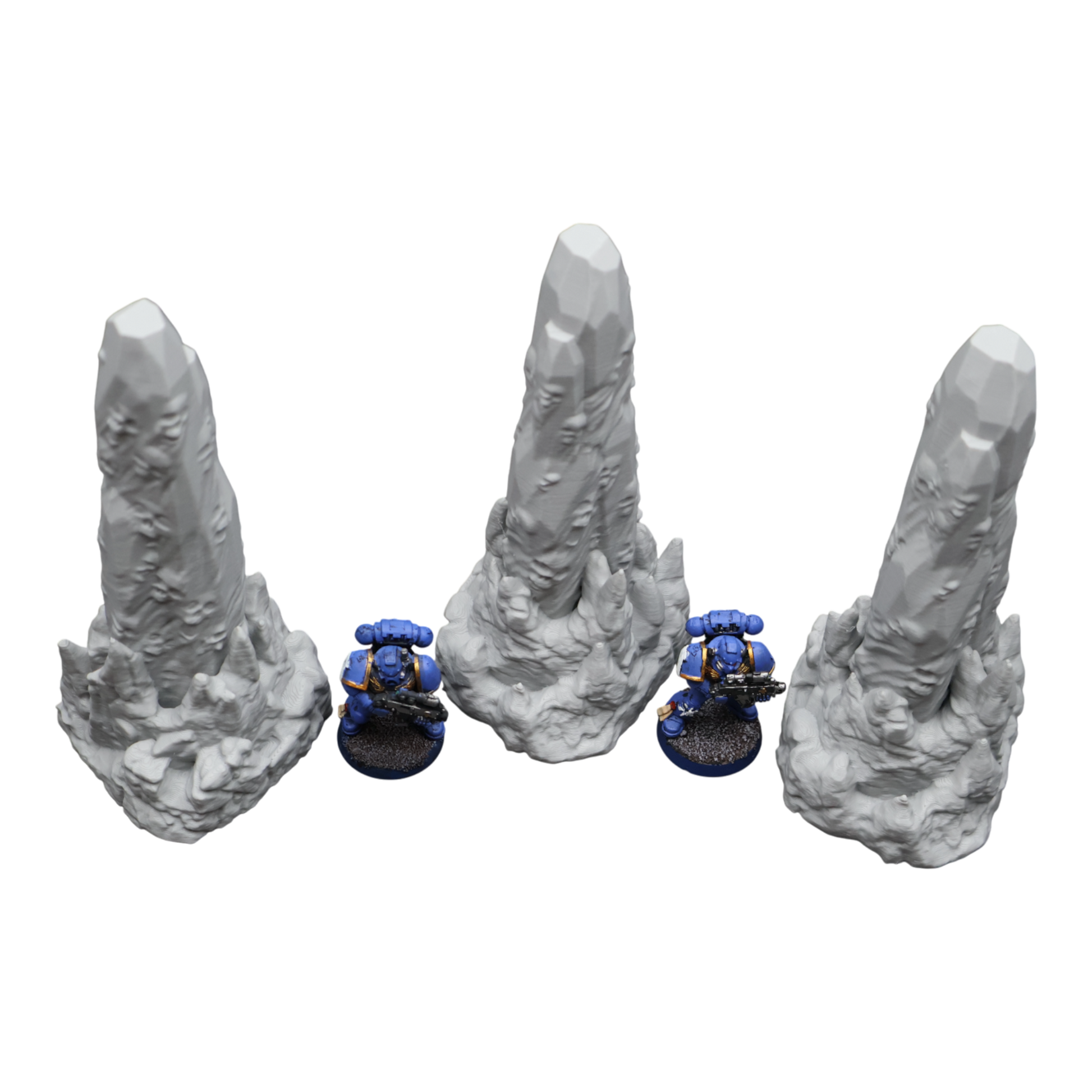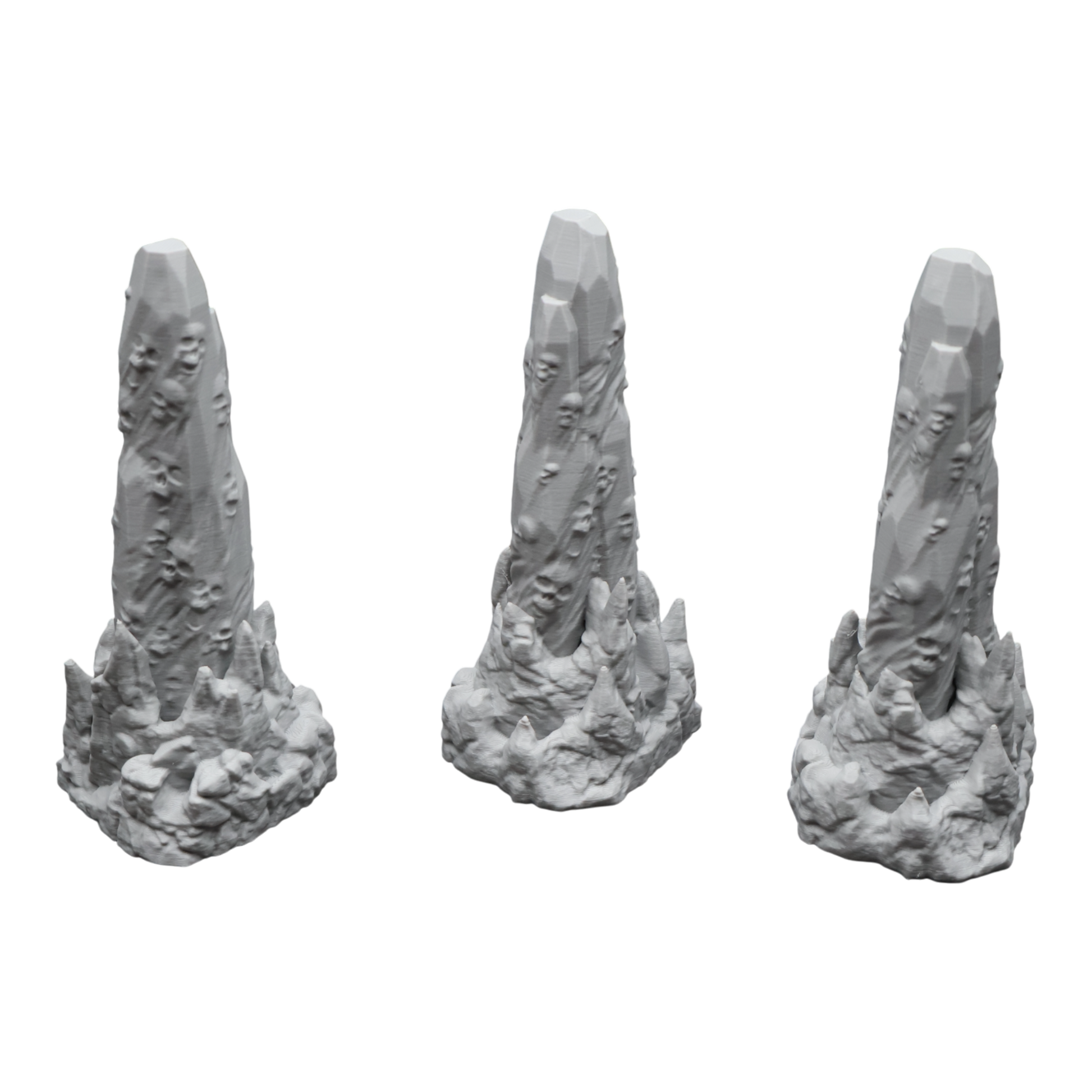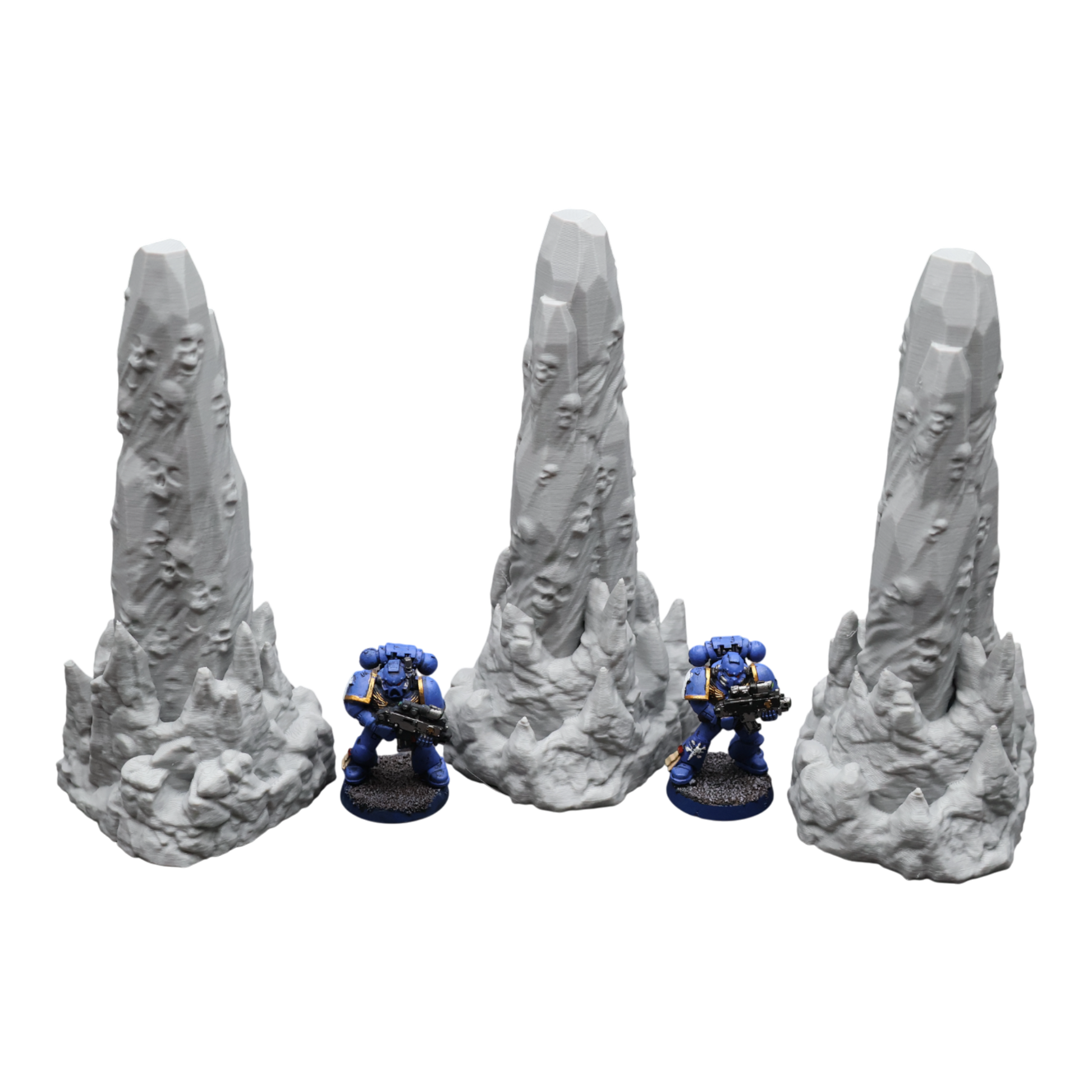 All scenery and terrain is 3D printed using a plant based grey plastic filament (PLA). The shade of grey may vary due to material suppliers and availability, please message if you have a specific requirement. Due to the nature of 3D printing there may be minor imperfections, however all items are quality checked before being posted. The miniature models used for product photos are to show sizing and display purposes only. They are not included in the orders. The 3D Models you receive will be of the same or better quality than those displayed in the listing pictures.