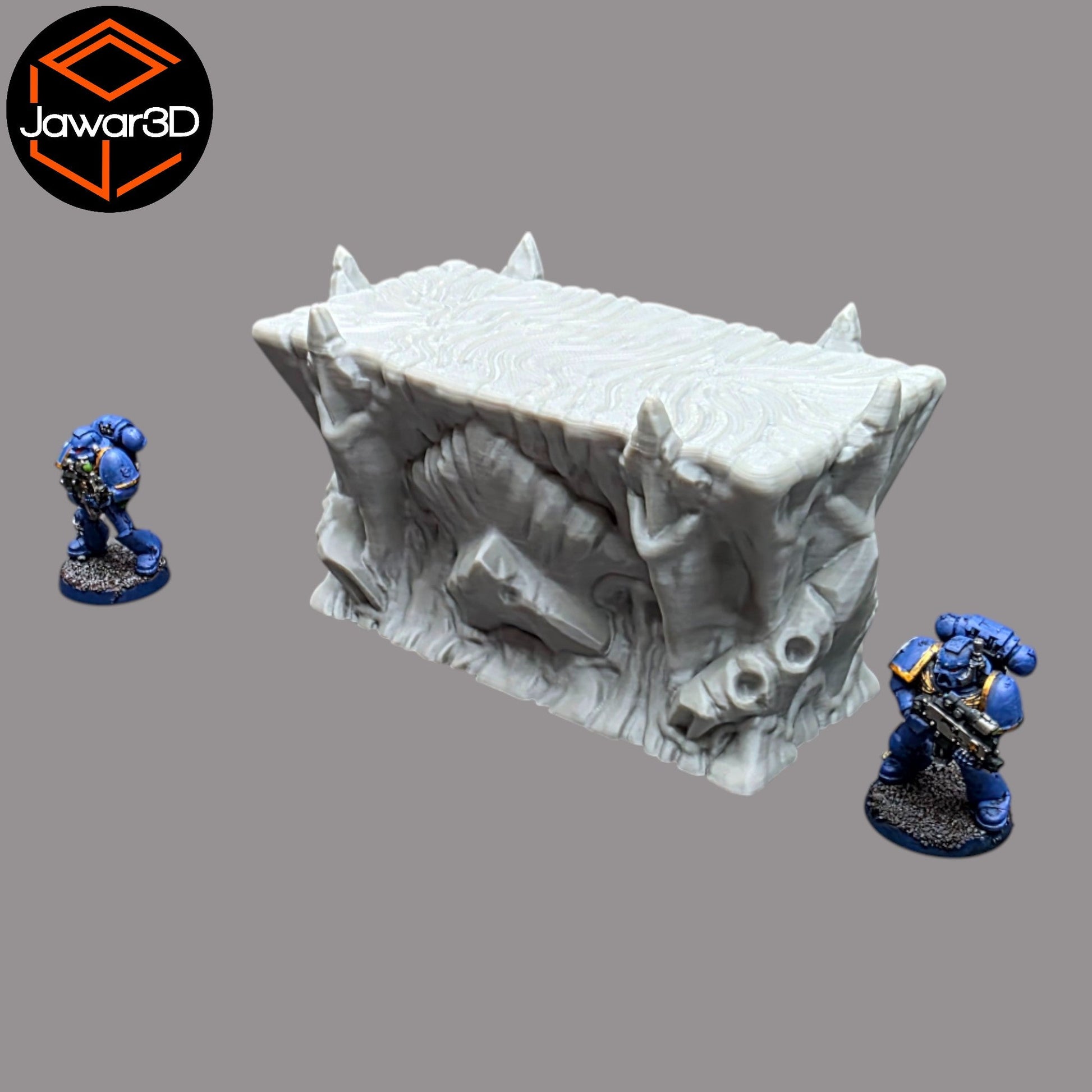 All scenery and terrain is 3D printed using a plant based grey plastic filament (PLA). The shade of grey may vary due to material suppliers and availability, please message if you have a specific requirement. Due to the nature of 3D printing there may be minor imperfections, however all items are quality checked before being posted. The miniature models used for product photos are to show sizing and display purposes only. They are not included in the orders. The 3D Models you receive will be of the same or better quality than those displayed in the listing pictures. All items are cleaned from artifacts and "stringing" (the wispy lines of material from the production process).