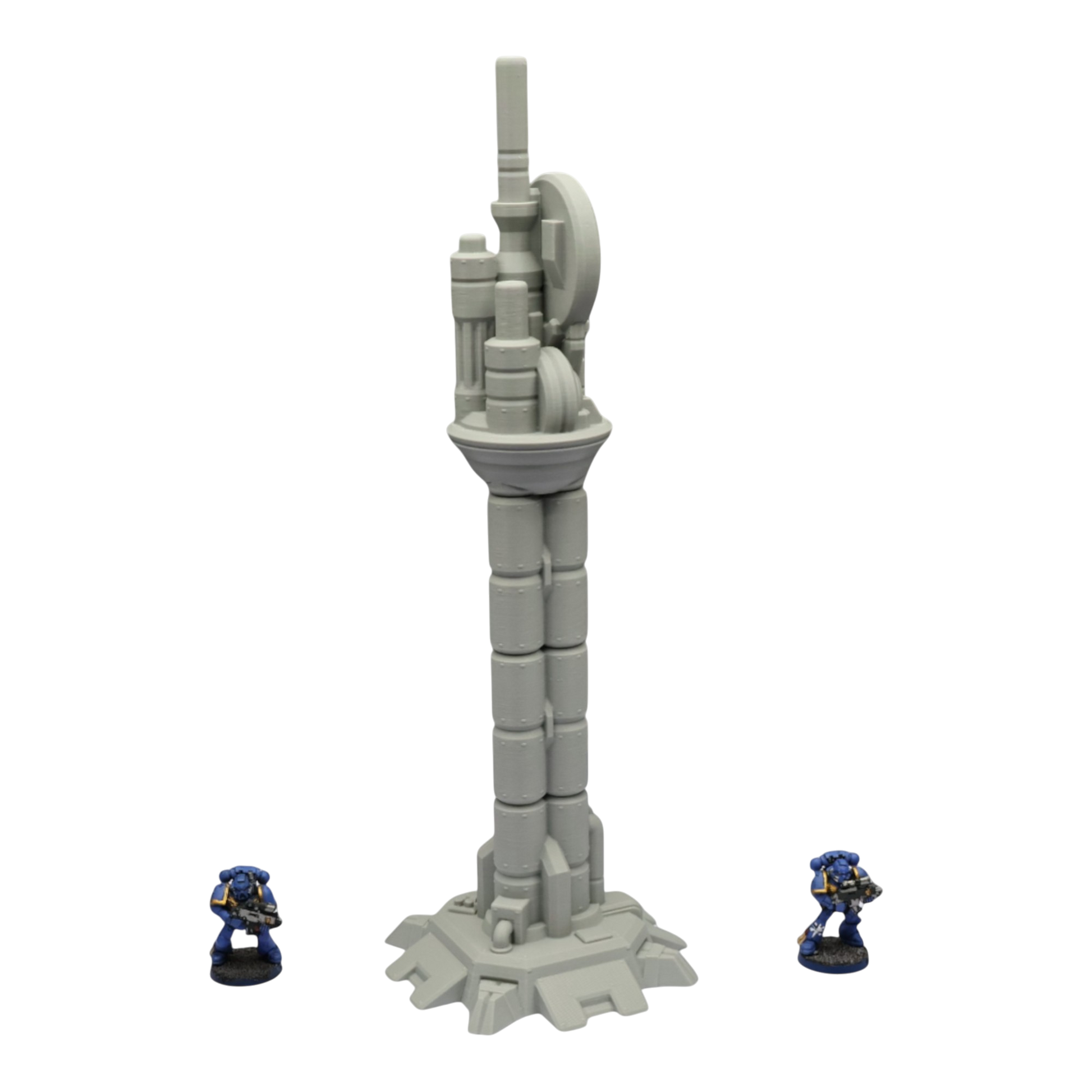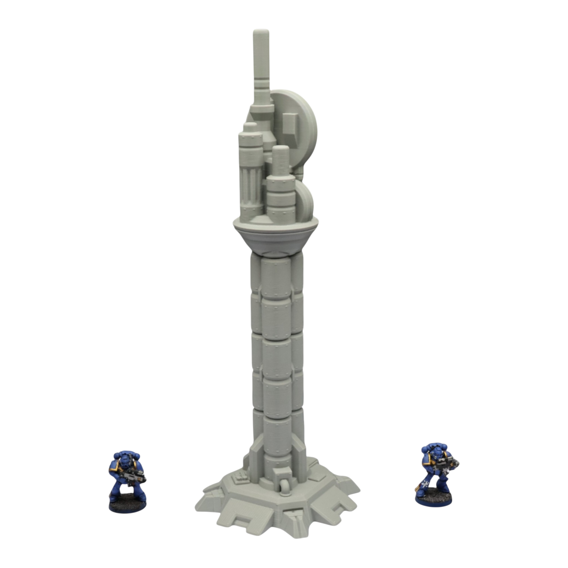 All scenery and terrain is 3D printed using a plant based grey plastic filament (PLA). The shade of grey may vary due to material suppliers and availability, please message if you have a specific requirement. Due to the nature of 3D printing there may be minor imperfections, however all items are quality checked before being posted. The miniature models used for product photos are to show sizing and display purposes only. They are not included in the orders. The 3D Models you receive will be of the same or better quality than those displayed in the listing pictures. All items are cleaned from artifacts and "stringing" (the wispy lines of material from the production process).