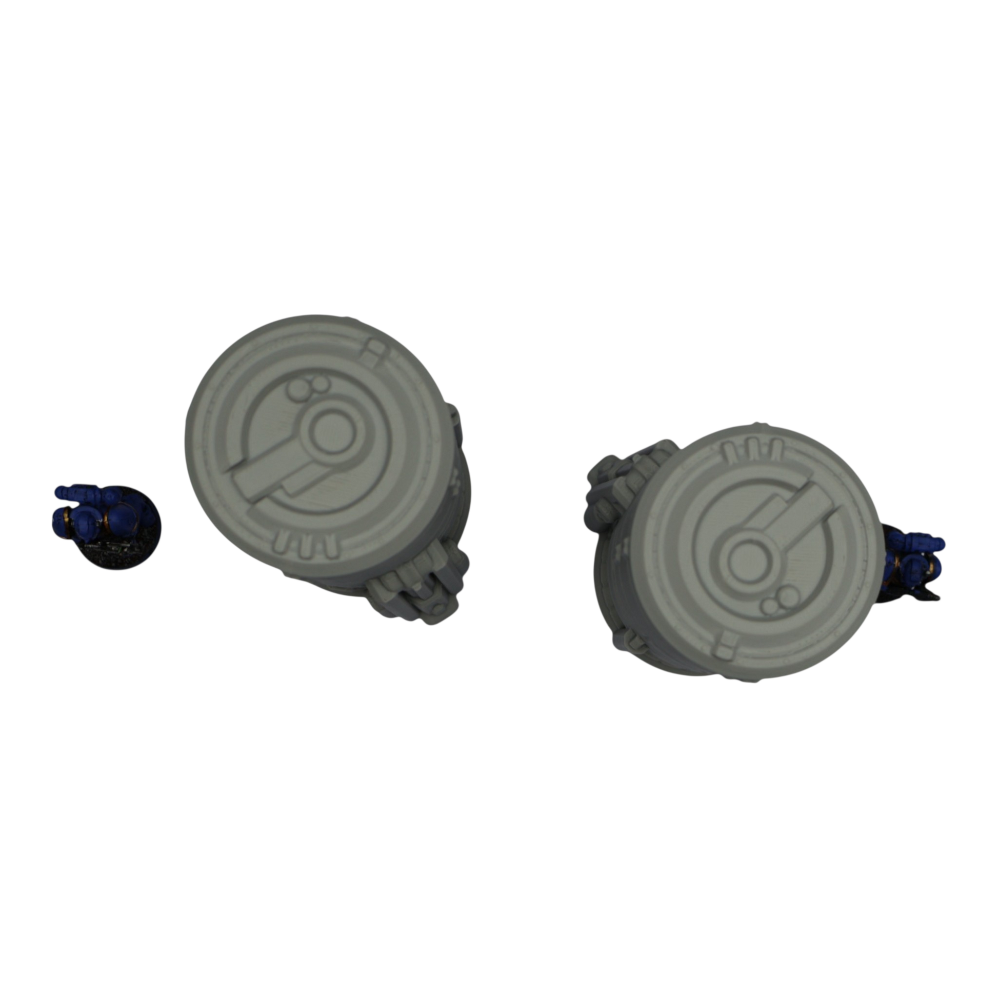All scenery and terrain is 3D printed using a plant based grey plastic filament (PLA). The shade of grey may vary due to material suppliers and availability, please message if you have a specific requirement. Due to the nature of 3D printing there may be minor imperfections, however all items are quality checked before being posted. The miniature models used for product photos are to show sizing and display purposes only. They are not included in the orders. The 3D Models you receive will be of the same or better quality than those displayed in the listing pictures. All items are cleaned from artifacts and "stringing" (the wispy lines of material from the production process).